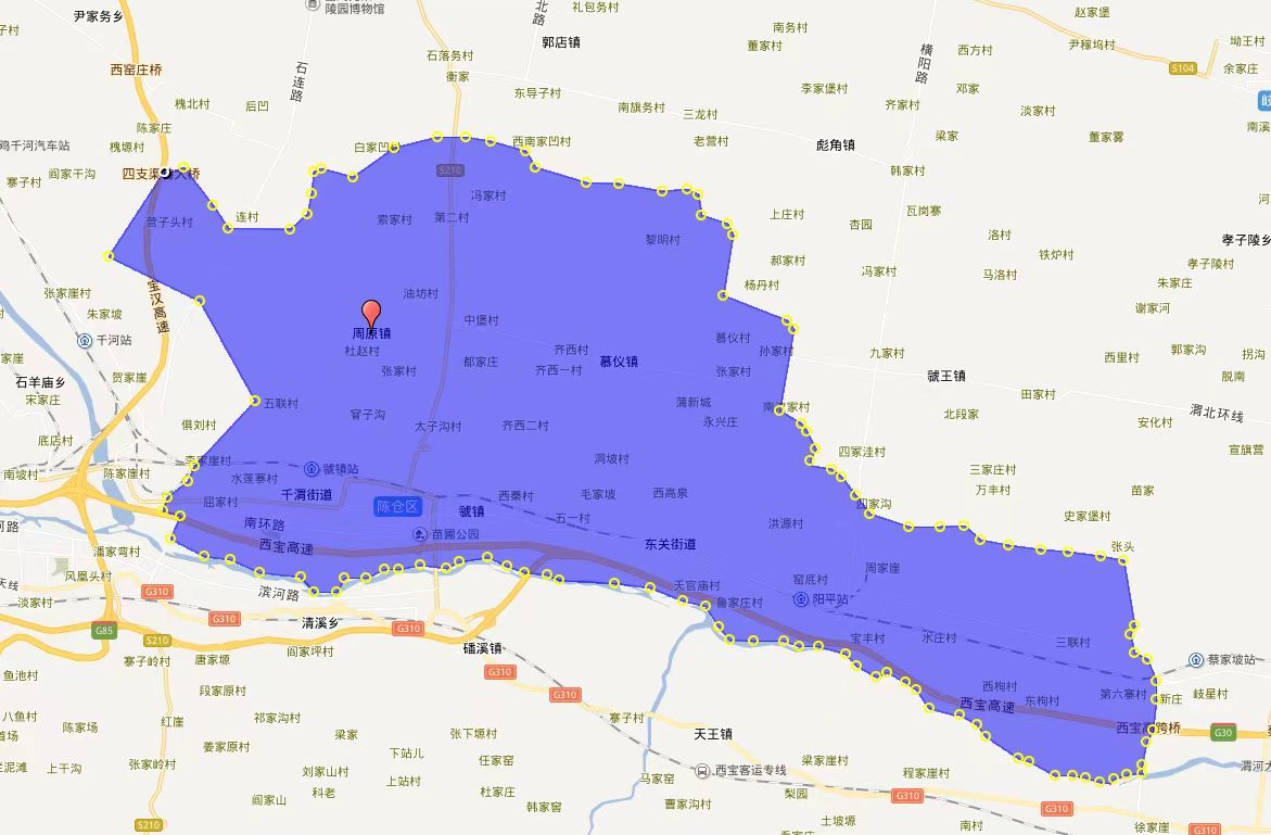 虢镇街道、千渭街道、东关街道、阳平镇、周原镇、慕仪镇全域:东至阳平镇第六寨村东边界;西至周原镇西边界;南至渭河北岸;北至慕仪镇冯家村边界(陕西康凯环保科技有限公司宝鸡分公司清洁燃煤配送中心除外)。总面积188.5平方公里。