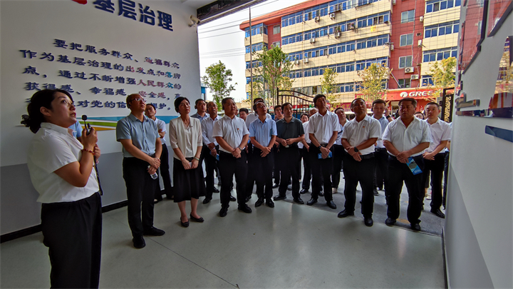 在千渭街道铁道南社区,观摩团通过听汇报、实地参观等方式,详细了解了“四型”社区建设,重点对网格化管理、信息化支撑、精细化服务、联动化共建的“四化共治”机制工作开展情况进行交流学习。
