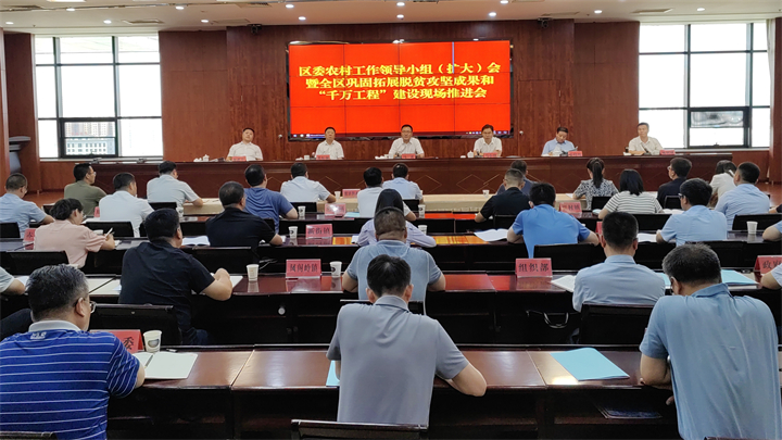 8月23日,区委农村工作领导小组(扩大)会暨全区巩固拓展脱贫攻坚成果和“千万工程”建设现场推进会召开。区委书记马霄出席会议并讲话,区委副书记、区长马小锋主持会议。区人大常委会主任裴振强、区政协主席苟晓明出席会议。区委副书记柳鹏举传达学习了习近平总书记关于“千万工程”和“三农”工作重要论述及省市有关会议精神,区政府副区长杨利刚部署了下一步“千万工程”建设和巩固衔接重点工作。