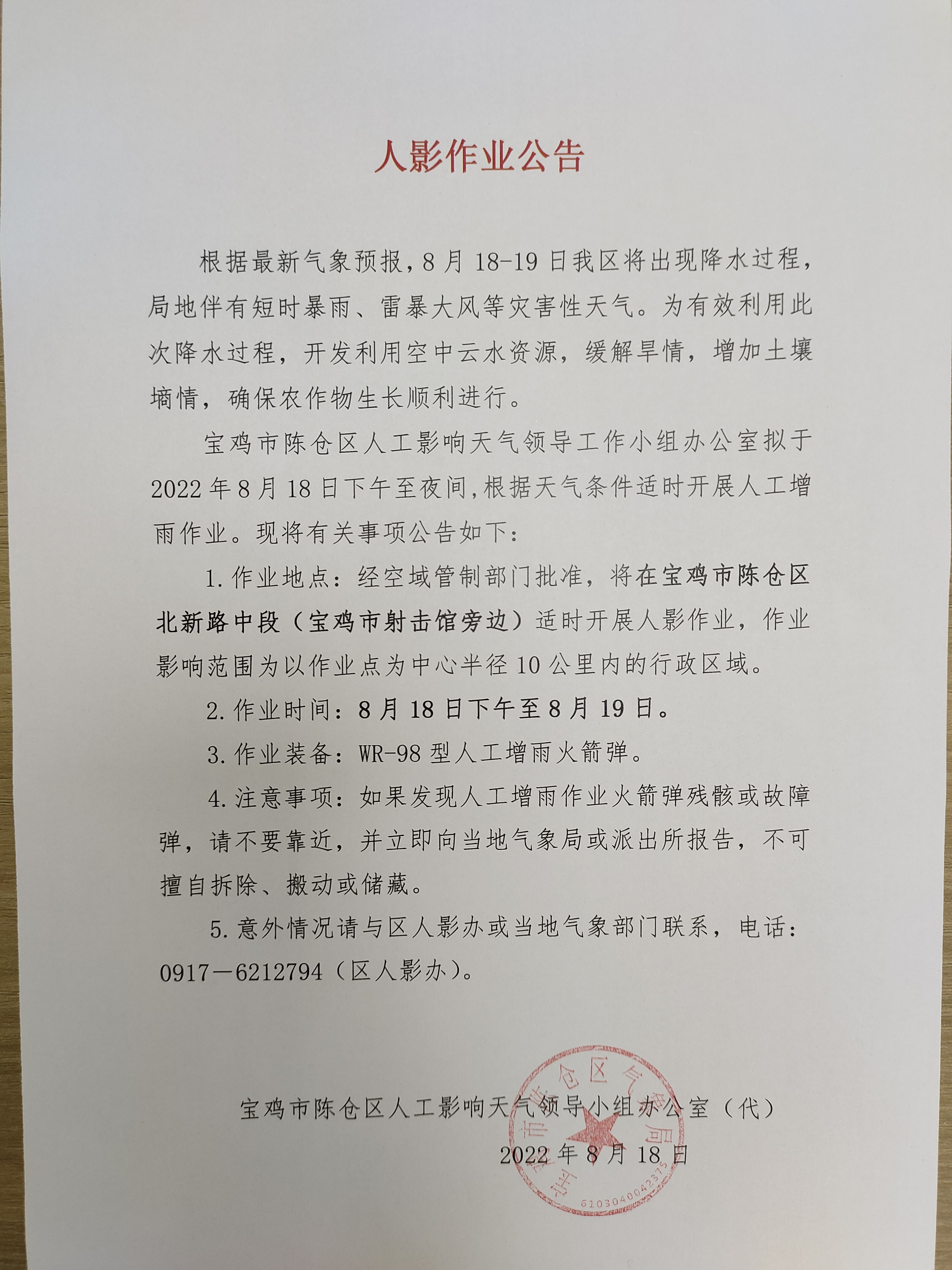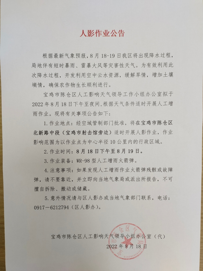 人影作业公告