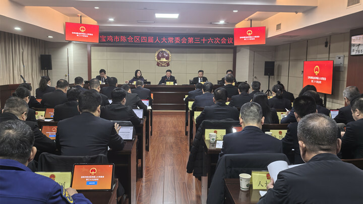 会议传达学习了区委四届十一次全会暨区委经济工作会议精神;听取和审议了区政府关于2025年人大代表票决民生实事项目完成情况暨2026年候选项目情况的报告,区四届人大常委会代表资格审查委员会关于区四届人大代表变动情况和补选代表的代表资格审查情况的报告,《宝鸡市陈仓区人大常委会关于表彰2025年度优秀人大代表建议的通报》;审议通过了《宝鸡市陈仓区人大常委会关于召开宝鸡市陈仓区第四届人民代表大会第五次会议的决定》,《宝鸡市陈仓区2026年民生实事项目人大代表票决及2025年民生实事项目满意度测评办法(草案)》,区人大常委会关于区四届人大五次会议主席团等建议名单(草案),《宝鸡市陈仓区人民代表大会常务委员会工作报告》;审议了区人大常委会2026年工作要点。