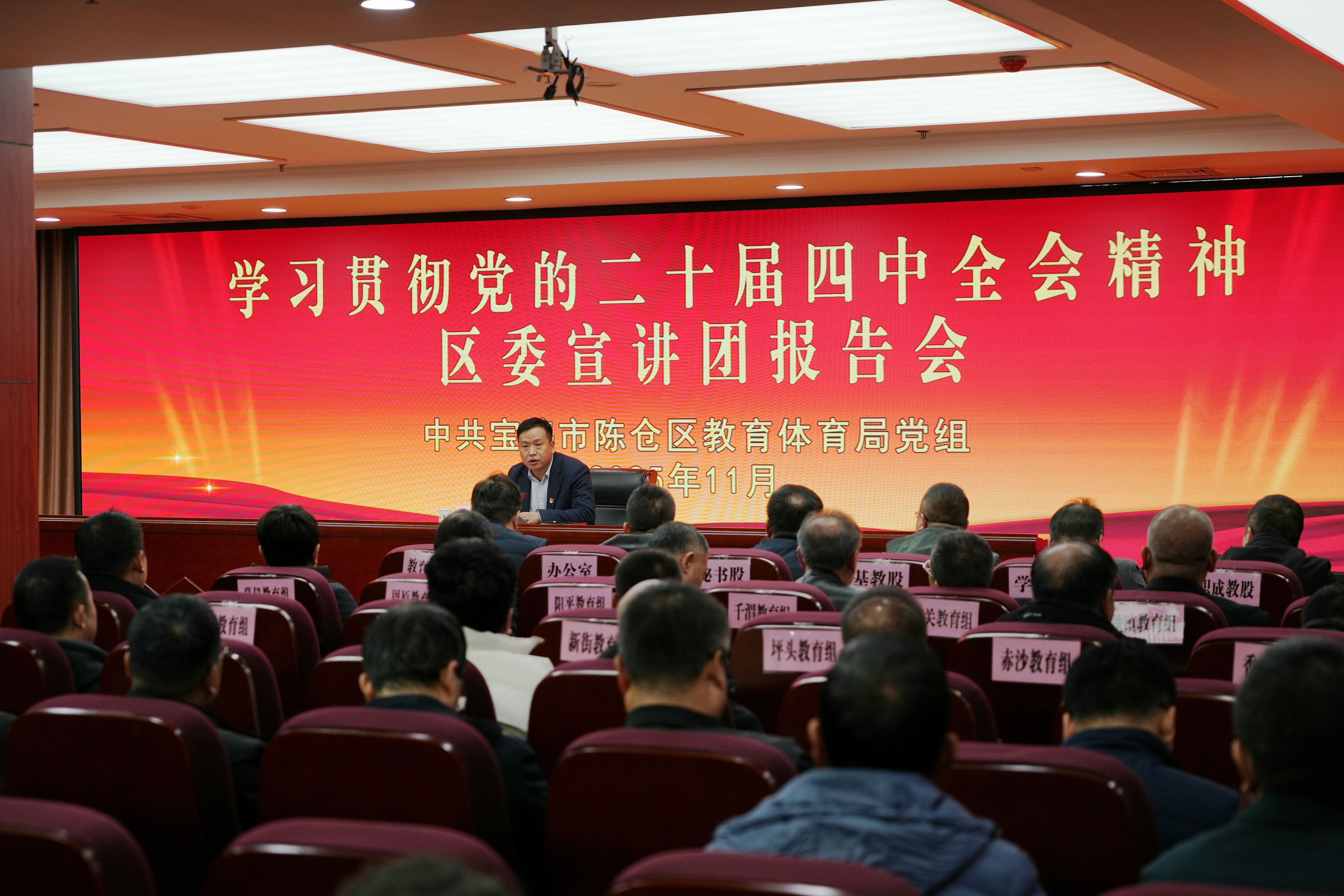 宣讲紧紧围绕《党的二十届四中全会精神宣讲提纲》,以“深入学习贯彻党的二十届四中全会精神,奋力谱写陈仓教育高质量发展新篇章”为主题,从深刻认识党的二十届四中全会的重大意义、准确把握党的二十届四中全会精神的核心要义、切实抓好党的二十届四中全会精神的贯彻落实等方面进行了全面深入的阐释。
