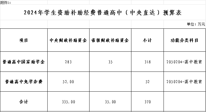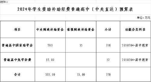 附件1:2024年学生资助补助经费普通高中(中央直达)预算表